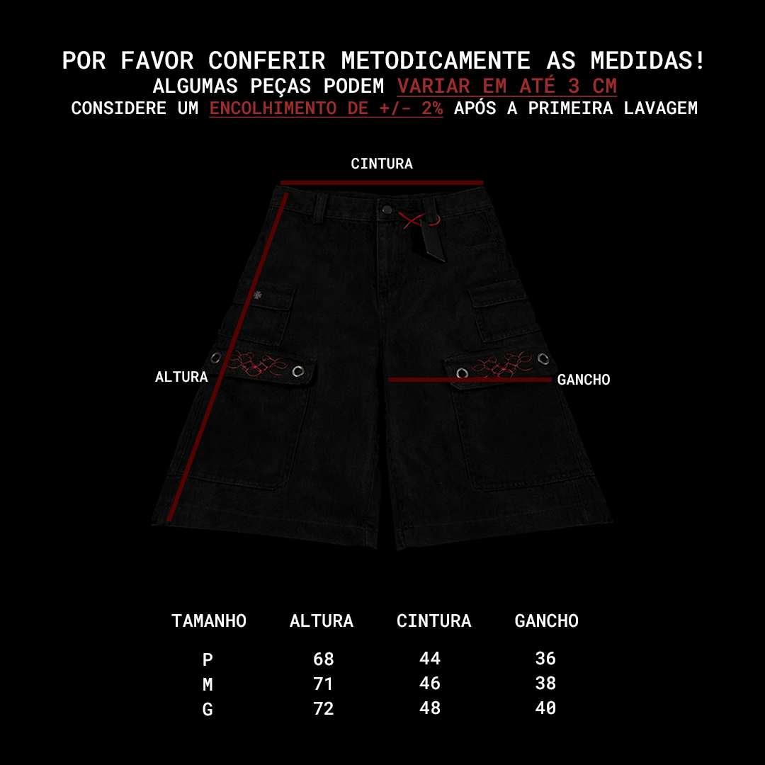 • Jorts multi uso com 8 bolsos sendo eles: 2 laterais, 2 traseiros, 2 frontais e 2 laterais pequenos